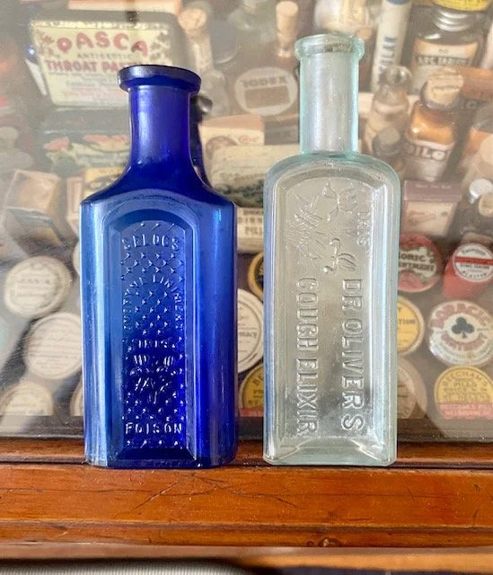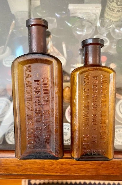 WA Apothecaries cough mixture and Anodyne liniment bottles.