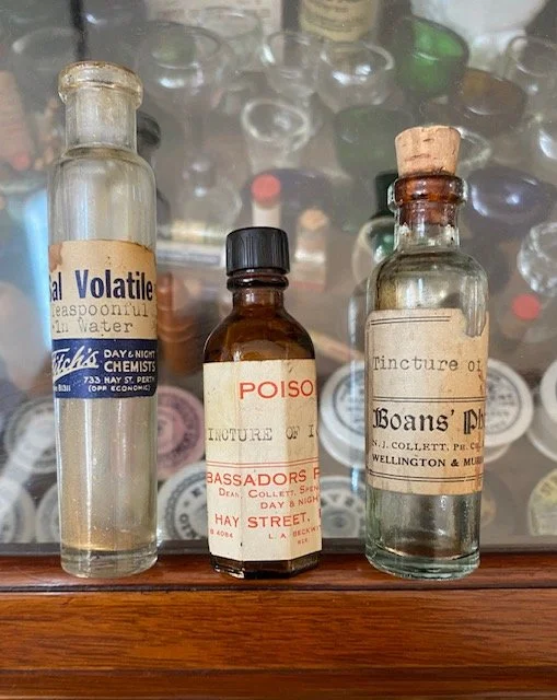 The collection gallery of WA chemist bottles and other items is an important record of many of the early chemists who were instrumental in the development of the industry in this state into what it is today.
