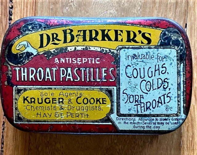 Very rare throat pastilles tin for Kruger & Cooke Perth 1920s
