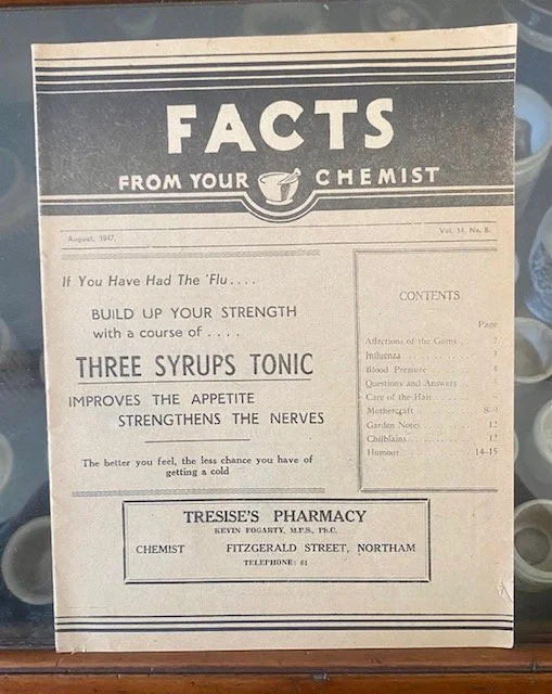 Greville operated in Geraldton until around 1920. He called his business "Red Cross Pharmacy"